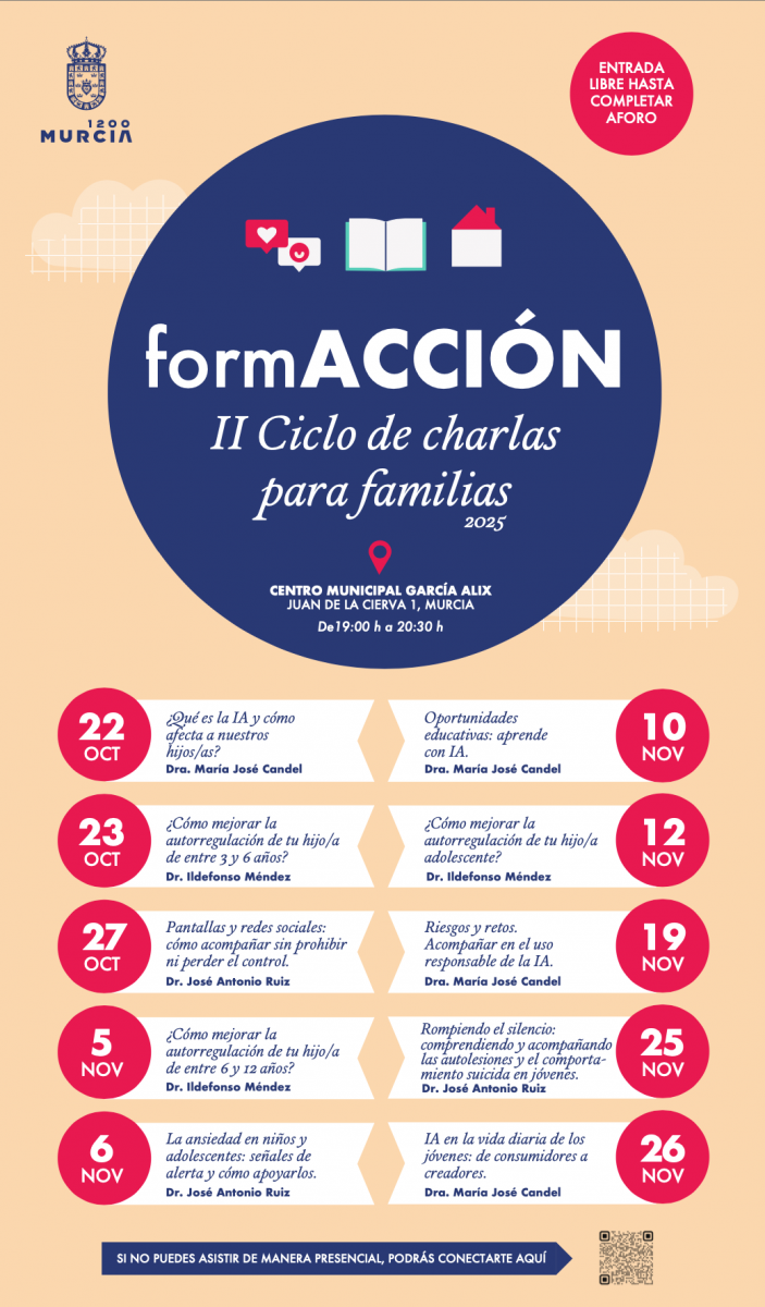 Esta mañana tendrá lugar la presentación a los medios de la segunda edición de formaACCIÓN, la iniciativa de información, apoyo psicosocial y pedagógico para familias del municipio de Murcia que, con gran éxito, iniciamos el año pasado.