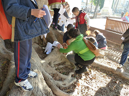 El Jardín de Floridablanca es uno de los jardines más antiguos de la ciudad. Para conocer su origen, su alto valor ambiental y su función dentro de la ciudad, los escolares realizan un recorrido por el mismo donde observan los árboles y los diferentes tipos de hojas de las especies más emblemáticas.